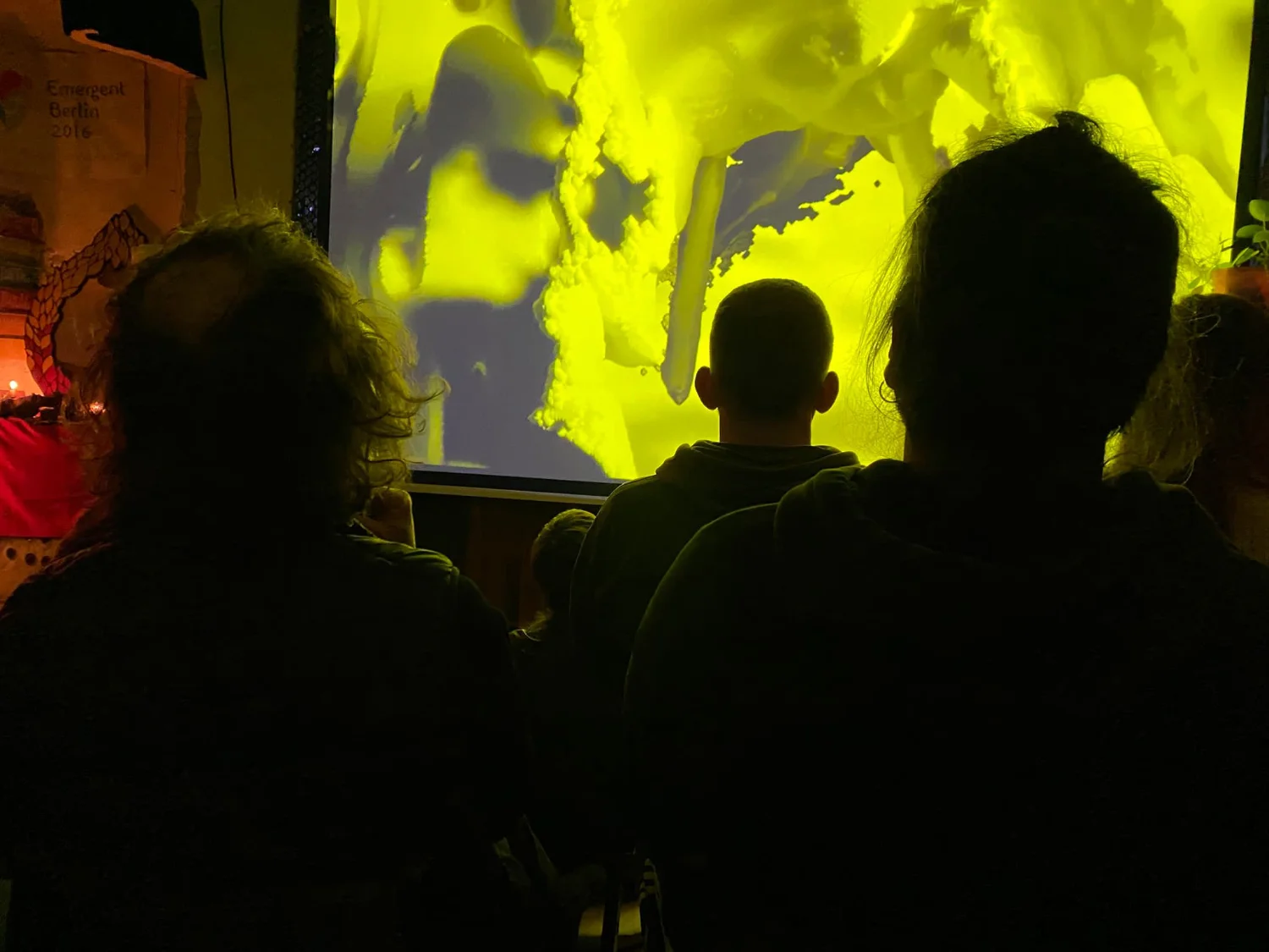 Guided Breathing is a piece where music and visuals are synced to the rhythm of diaphragm breathing method (5–8) that calms the nervous system. 3D Scans of real trees made all across Europe are 'breathing' with the audience. Additional hints in the video guide reflection on the Signals that were picked at random at the entrance. Signals were calligraphed prompts like spontaneity, forgiveness, joy etc.