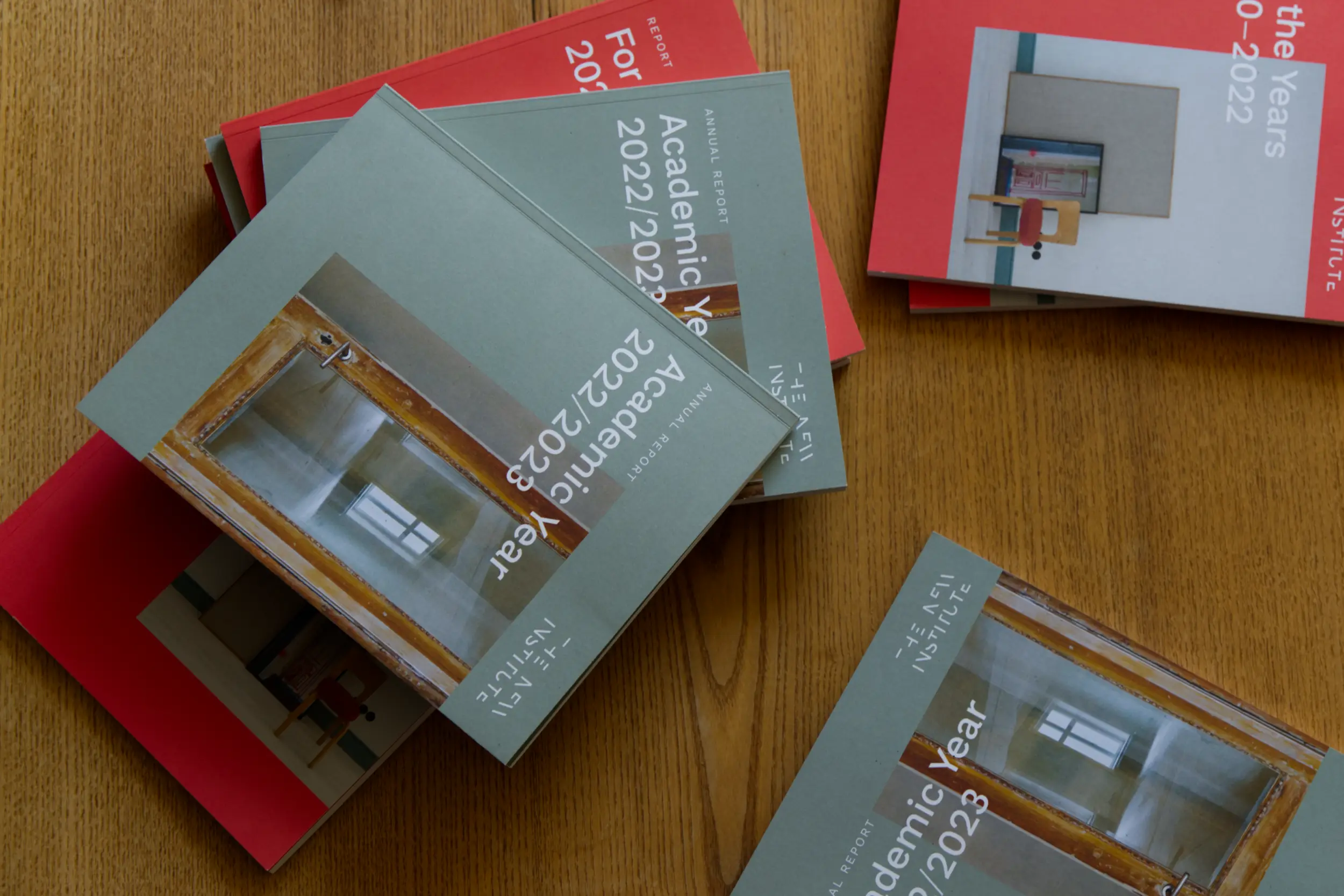 In collaboration with Tamara Siewert we have designed four annual reports for The New Institute. Together, they present the evolution of Institute's program and research architecture since its founding and construction. Reports also outline research activities, exchange through fellowship programs, events and Fellow's academic output.